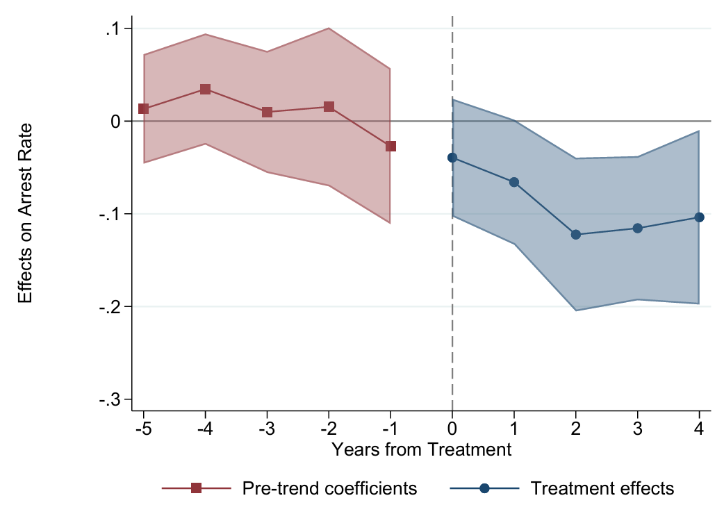 in implementation timing and agency-level arrest data, we employ a difference-in-differences event-study approach