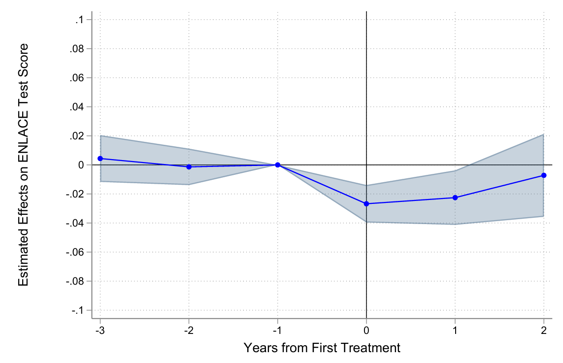 after earthquake exposure. Affected students’ test scores decline by 2.5 percent of a standard deviation